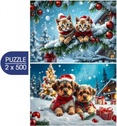 Puzzle gattini e cuccioli natalizi 2×500 pezzi