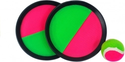La superficie in velcro nei colori verde neon e rosa tiene saldamente la pallina, così si divertono anche i più piccoli e i principianti.