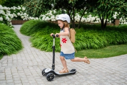 MoMi San è il primo monopattino ideale per piccoli rider dai circa 3 anni. Le tre ruote assicurano una stabilità eccellente, il peso ridotto di 2,7 kg facilita la maneggevolezza e il freno a pedale offre sicurezza in frenata. Grazie alle ruote LED la guida è non solo sicura, ma anche divertente.