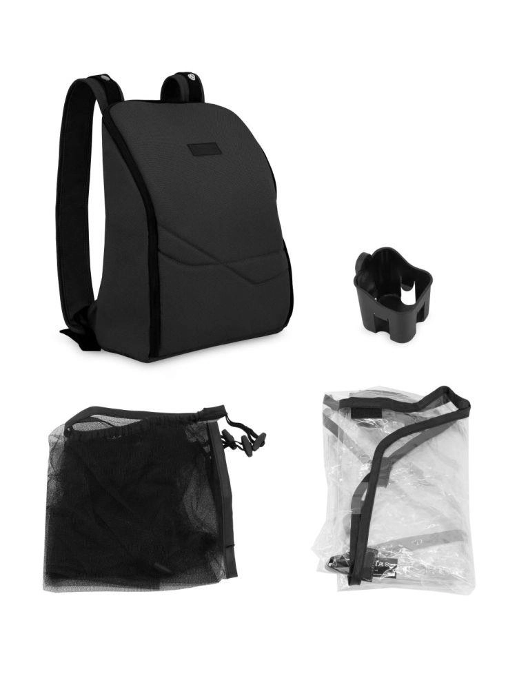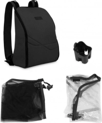 La confezione include pratici accessori: zaino, portabevande, zanzariera e parapioggia. Il cesto con portata di 2 kg contiene tutto il necessario per la passeggiata. Un set opzionale di adattatori consente di collegare due passeggini in configurazione tandem o per gemelli – un’ottima soluzione per una famiglia in crescita.
