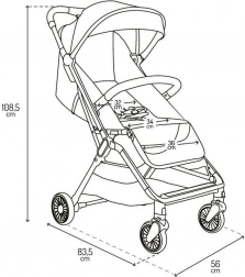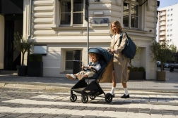 La capottina spaziosa con finestra per il contatto con il bambino e una seconda finestra di ventilazione in rete offre comfort nelle giornate calde. La seduta con schienale regolabile fino alla posizione nanna e poggiagambe a 4 livelli si adatta alle esigenze del momento. La sicurezza è garantita dalle cinture a 5 punti e dal corrimano removibile.