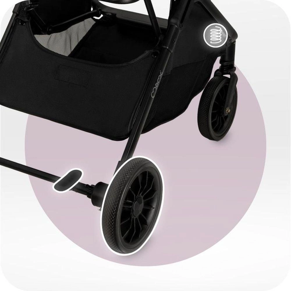 MoMi ANDREA è il passeggino ideale per la città e le gite. Grazie al sistema auto-pieghevole, si chiude con un solo pulsante in un formato compatto che resta stabile in piedi. Le sospensioni e le ruote in EVA esenti da manutenzione (6,5" anteriori, 7" posteriori) assicurano una marcia fluida e una facile manovrabilità.