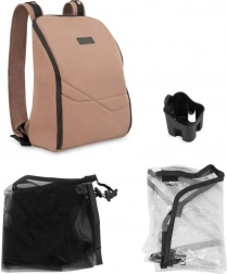In dotazione trovi zaino per passeggino, portabicchiere, zanzariera e parapioggia. Un set opzionale di adattatori consente di unire due passeggini in una pratica soluzione per fratellini o gemelli.