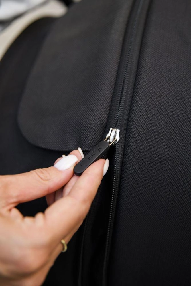 La cappottina con finestra consente di tenere il bambino sotto controllo; una seconda apertura con rete migliora il flusso d’aria nelle giornate calde.