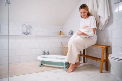 MoMi NATA è una soluzione intelligente e salvaspazio per il bagnetto quotidiano del bambino. La vaschetta si piega in pochi istanti fino a diventare piatta, occupando pochissimo spazio, e può essere riposta facilmente anche in un bagno piccolo. L’occhiello integrato permette di appenderla per un’asciugatura veloce e una conservazione pratica.