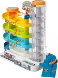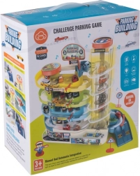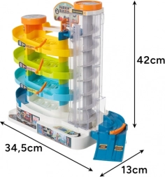 Solleva le macchinine a qualsiasi piano grazie all’ascensore trasparente. Può essere azionato manualmente o con motore elettrico (3× AA, non incluse).
