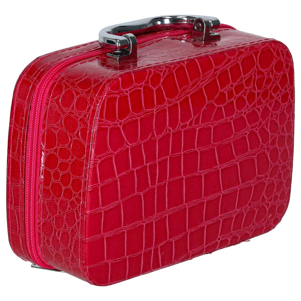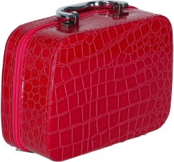 La valigetta leggera con manico, doppia zip e specchietto mantiene tutti gli accessori al loro posto. I piedini metallici garantiscono stabilità su ogni superficie.