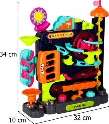Questa colorata pista a biglie offre ai bambini dai 3 anni un emozionante percorso ricco di rampe, spirali ed elementi interattivi. Controlla la pista con leve e manopole, osserva le biglie attraversare gli ostacoli e allena coordinazione e pazienza. Ideale per il divertimento in casa e per semplici esperimenti di fisica con la gravità.