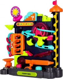Scopri una divertente pista a biglie che sviluppa motricità fine, coordinazione occhio–mano e insegna il principio causa–effetto. Con leve, manopole e pulsanti guiderai le biglie metalliche lungo un percorso ricco di rampe, imbuti e elementi rotanti. I colori vivaci e la struttura resistente garantiscono un gioco dinamico e una lunga durata.