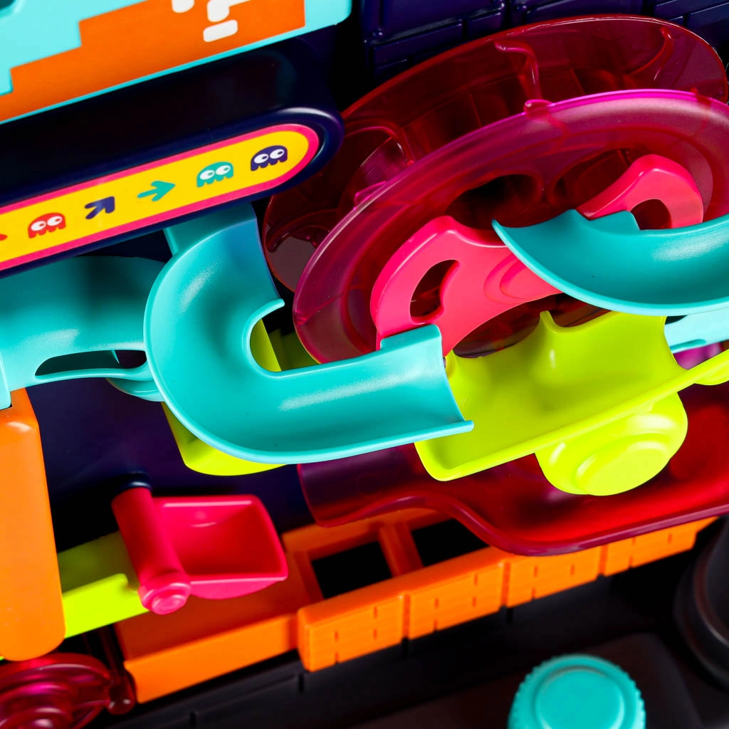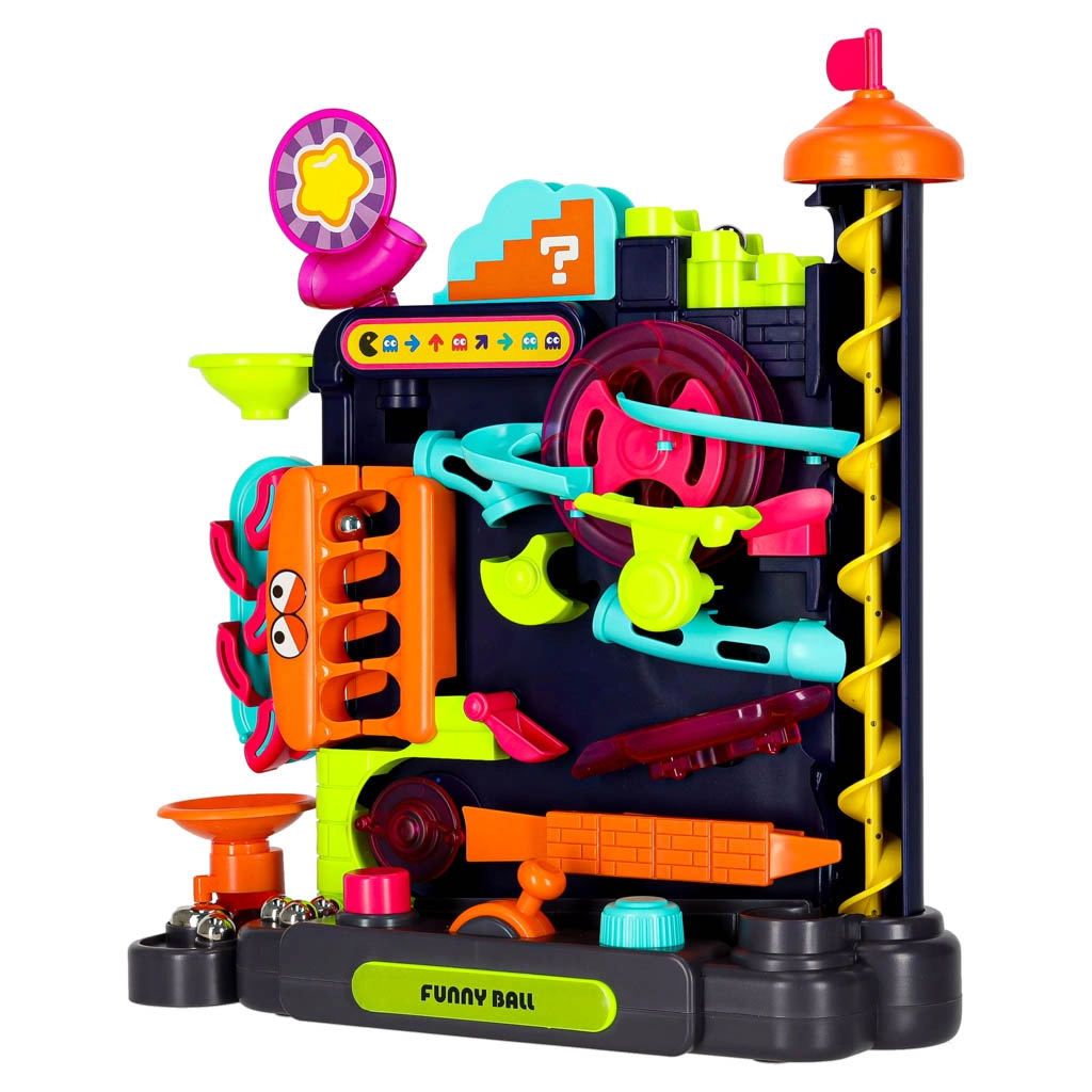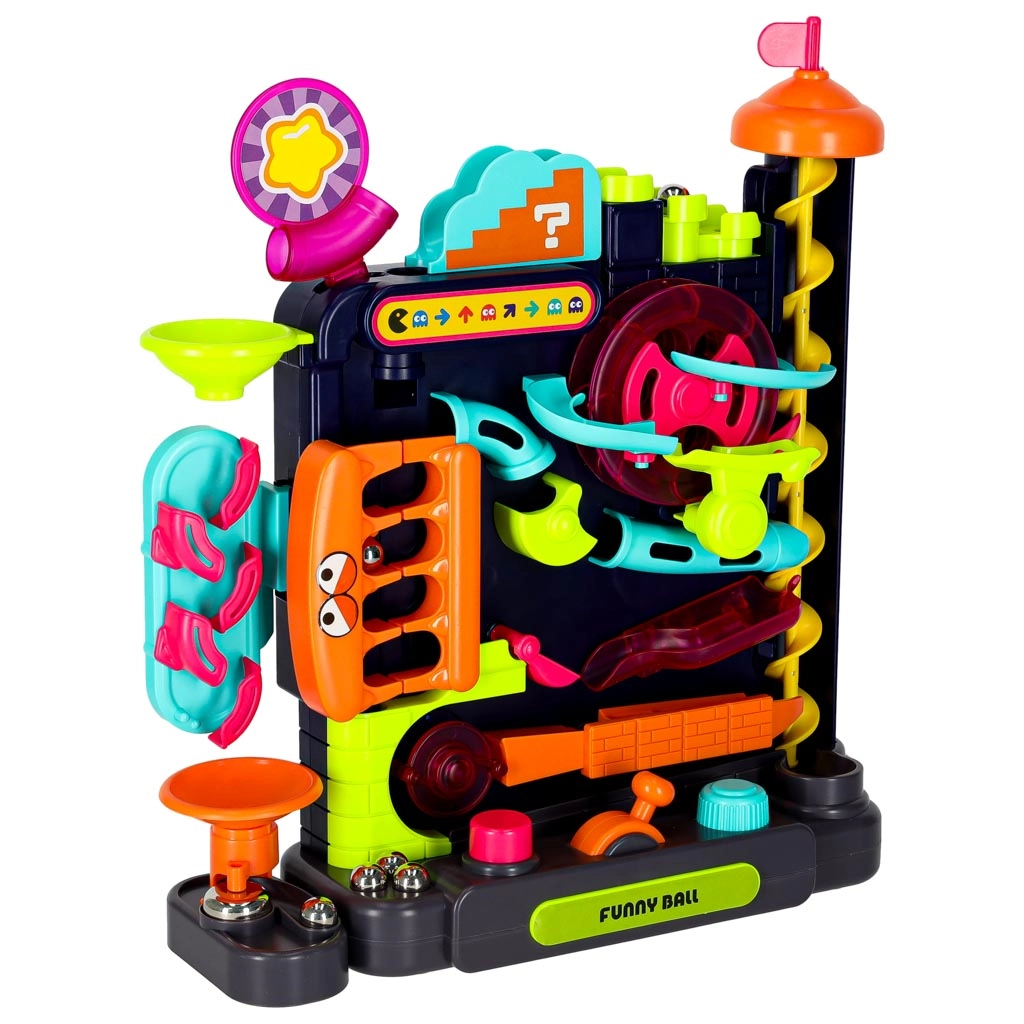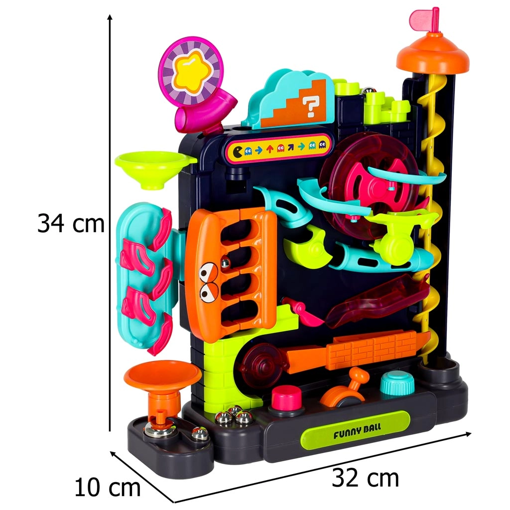 Grazie alla robusta struttura in plastica, alla base stabile e al layout chiaro dei tracciati, il gioco è accessibile anche ai più piccoli. Il set comprende 6 biglie metalliche, facili da avviare e da riportare alla partenza. La varietà di percorsi e parti mobili stimola creatività, pensiero logico e concentrazione.