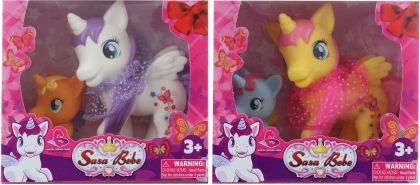 Un tenero set di due unicorni farà felici tutti i piccoli amanti delle fiabe. Include un unicorno grande e uno piccolo in plastica resistente, ideale per il gioco creativo e lo sviluppo della fantasia. La confezione compatta e le due varianti di colore (in base alla disponibilità in magazzino) lo rendono un regalo perfetto per bambini dai 3 anni.
