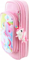 Un astuccio alla moda con motivo unicorno, ideale per la scuola e il tempo libero. Grazie alle due tasche con cerniera separerete facilmente la cancelleria dai piccoli oggetti come elastici, temperamatite o adesivi. Il pannello frontale 3D con arcobaleno e unicorno dona un look giocoso, mentre le cerniere di qualità assicurano un’apertura scorrevole.