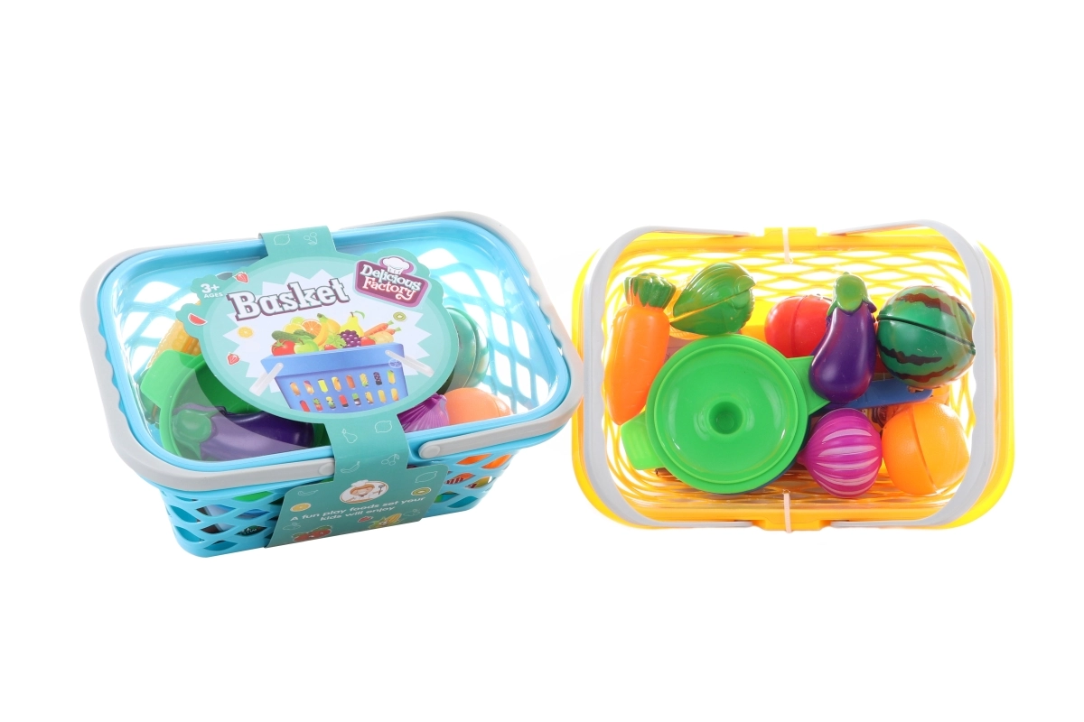 Scoprite il set completo per il piccolo chef! Il cestino in plastica con manici può essere usato anche come cestino della spesa e all’interno troverete tutto il necessario per giocare a cucinare: dalla frutta e verdura, alla scatolina con caffè e tè, fino al tagliere e al coltello sicuro. Gli alimenti sono uniti con velcro, così i bambini possono facilmente “tagliarli” e ricomporli.