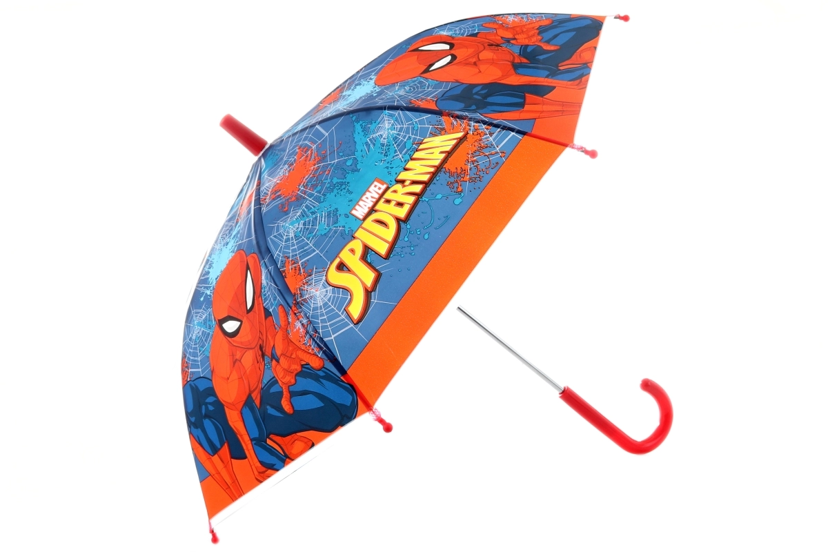 Questo ombrello colorato con l’iconico motivo MARVEL SPIDER-MAN è ideale per i bambini che amano i supereroi. Grazie alle robuste stecche in metallo e al telo resistente protegge affidabilmente dalla pioggia, mentre le estremità arrotondate delle stecche aumentano la sicurezza durante l’uso.