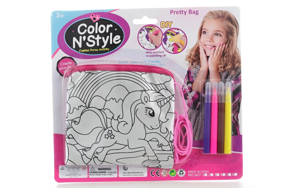 Trasforma una semplice borsetta in un accessorio moda originale! La borsetta da colorare con motivo unicorno è una scelta perfetta per i bambini che amano creare. Grazie ai pennarelli inclusi, possono facilmente colorarla secondo la loro fantasia e indossarla ogni giorno.