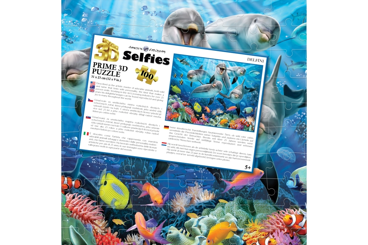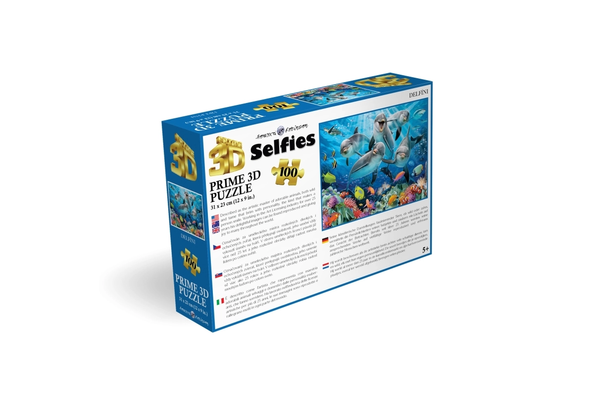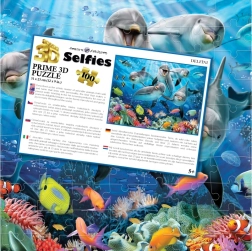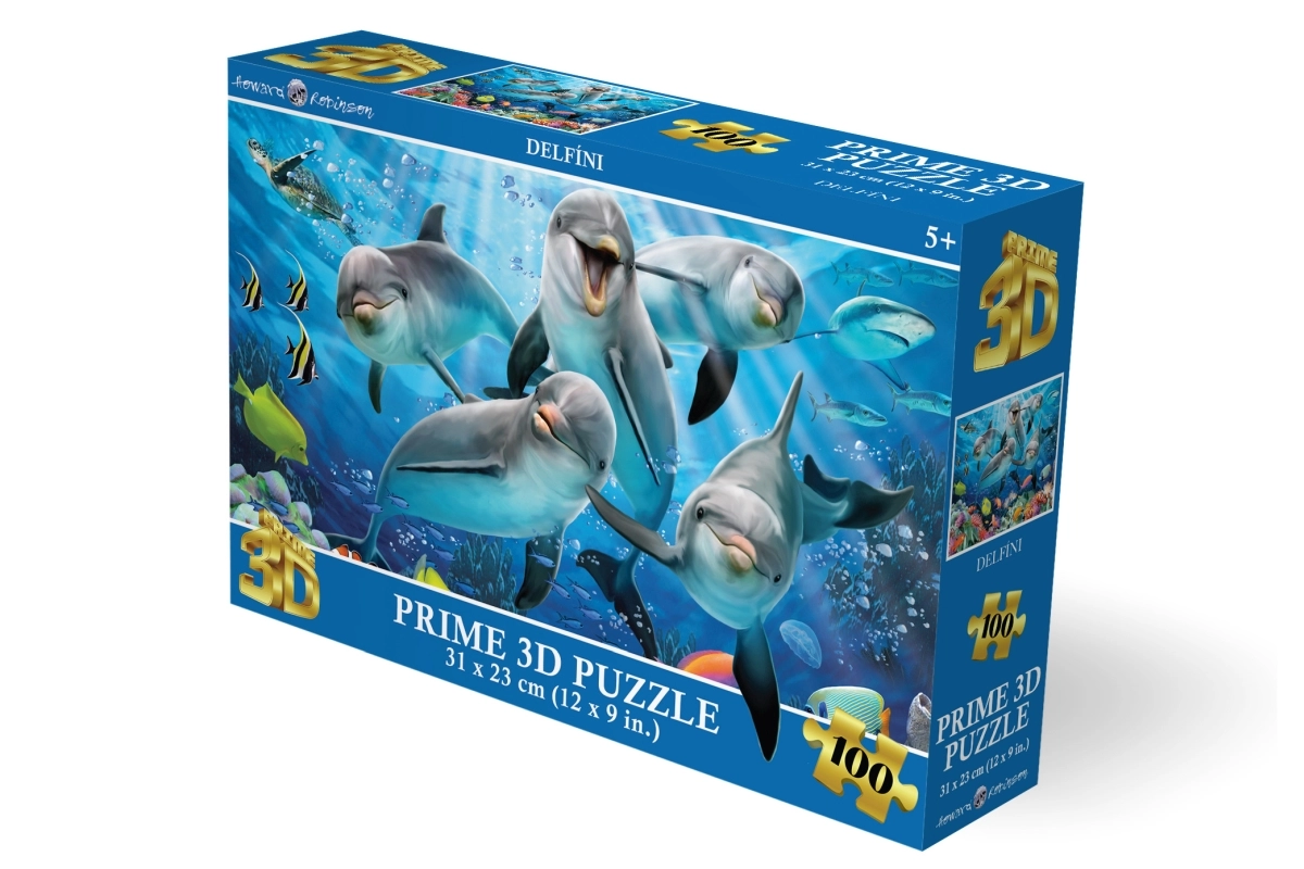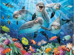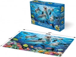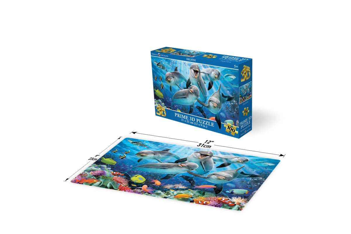 Scopri un divertimento che sviluppa pazienza, concentrazione e motricità fine. Questo puzzle 3D a tema delfini presenta una vivace scena sottomarina che, grazie al lenticolare effetto 3D, appare plastica e dinamica. L'immagine finita ha un formato compatto di 31 × 23 cm, perfetto per essere esposta nella cameretta.