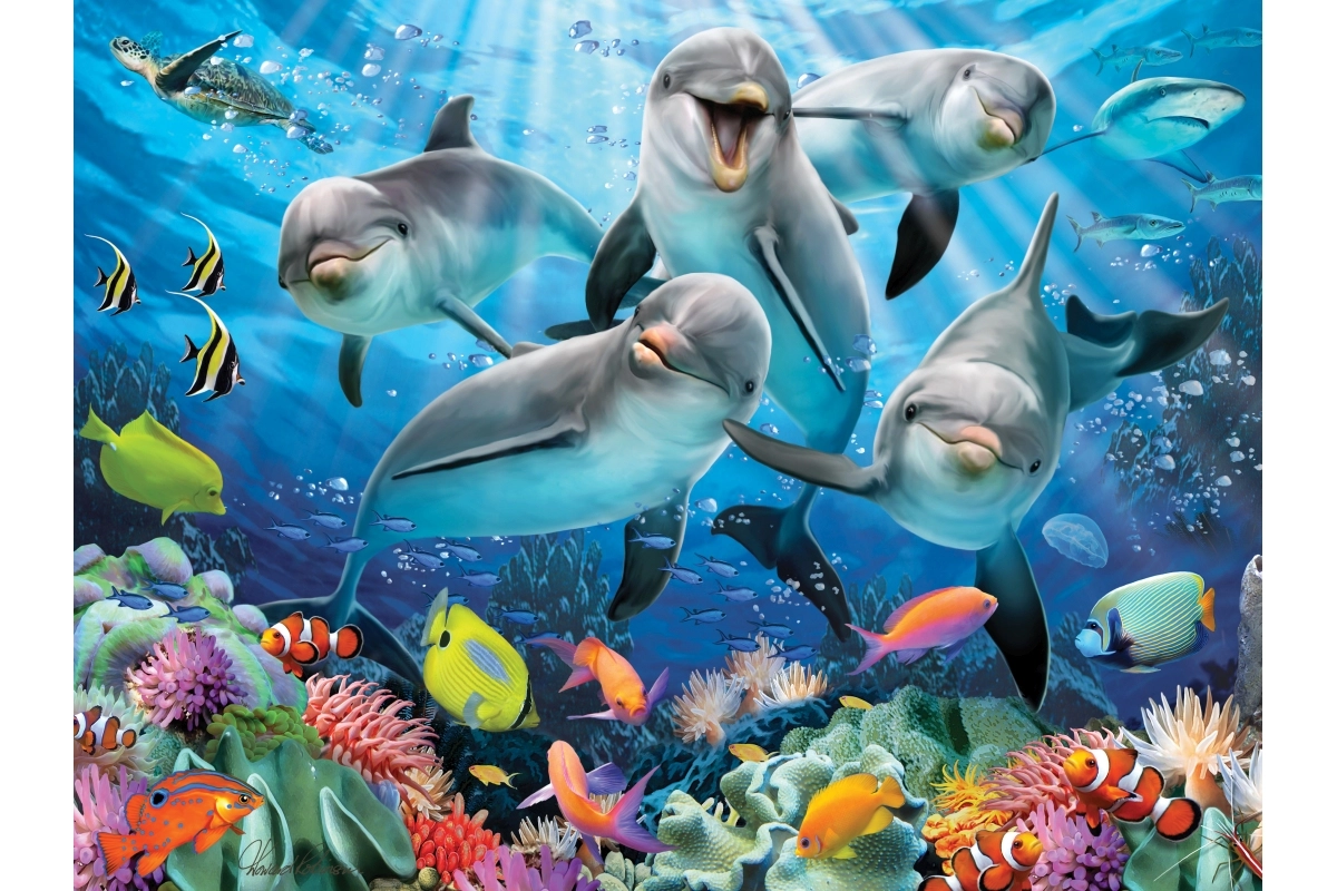 La superficie speciale crea profondità e movimento, facendo sembrare i delfini come se nuotassero proprio davanti a te.