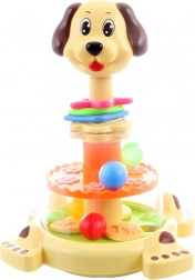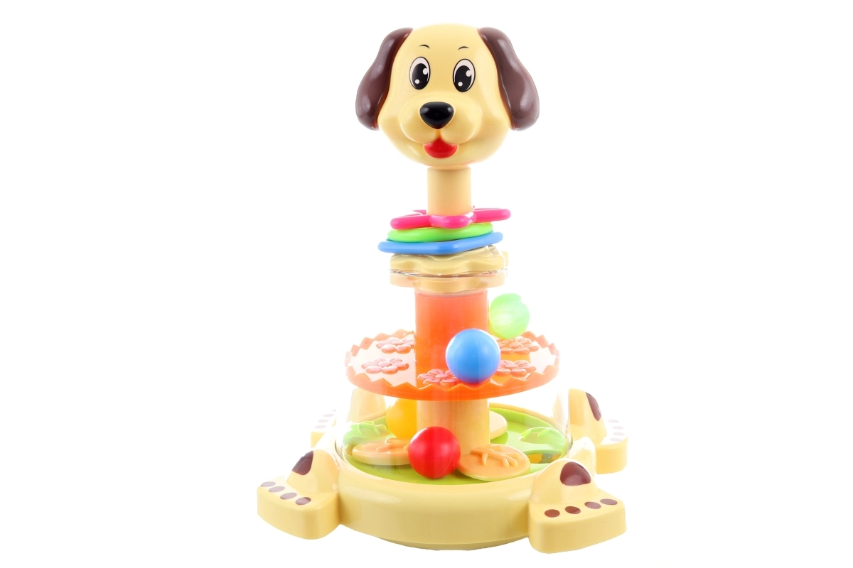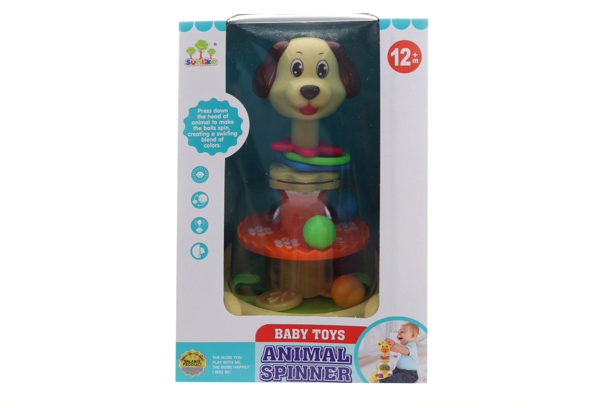 Divertente trottola a forma di cagnolino per bambini dai 12 mesi che sviluppa la motricità fine e la percezione sensoriale. Con una leggera pressione sulla testa del cagnolino, all’interno le palline iniziano a girare creando un effetto colorato. Robusta struttura in plastica, sicura per le piccole mani dei bambini.
