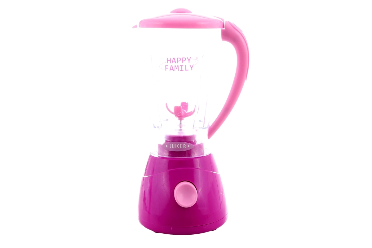 Frullatore rosa con un solo pulsante, caraffa trasparente e “lama” visibile che durante il gioco ruota e si illumina.