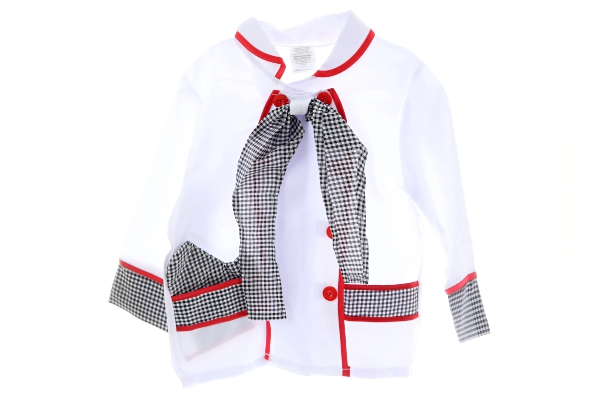 Il costume da cuoco per bambini stimola fantasia, creatività e motricità fine. Il set include tutto il necessario per un gioco realistico del cucinare: dalla giacca elegante con bottoni agli accessori pratici, compresi guanto da cucina, cappello e utensili in plastica.