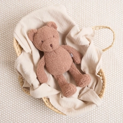 L’orsetto Mika è un classico amico di peluche dal tocco nostalgico che non passa mai di moda. Il tessuto bouclé soffice in colore cioccolato invita ad essere coccolato e la sua morbida imbottitura offre supporto durante il riposo e l’addormentamento. Grazie alle sue estremità più lunghe e pendenti è piacevolmente flessibile e si abbraccia comodamente.