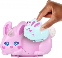 Scopri un divertimento magico con la borsetta compatta POLLY POCKET Coniglietti – Regno da Favola. Due mondi collegati in un adorabile design a coniglio, 2 micro-bamboline e 12 accessori per un gioco in viaggio senza fine. Premi il naso della mamma coniglia, apri entrambe le sezioni e parti per l’avventura con il castello incantato, l’arcobaleno e gli animaletti.