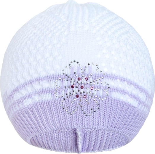 Elegante cappellino lavorato a maglia NEW BABY in raffinata tonalità viola, impreziosito da un delicato fiorellino con strass scintillanti. Grazie alla composizione naturale è morbido sulla pelle del bambino, lascia respirare e allo stesso tempo mantiene la forma.