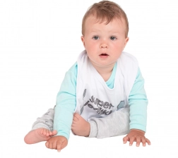 I colori utilizzati per la stampa sono certificati e sicuri per i bambini. Il bavaglino ha bordo bianco e chiusura a bottone a pressione, quindi si indossa facilmente e rimane ben fermo. Ideale per l’uso quotidiano durante la pappa, protegge i vestiti dallo sporco e mantiene il bimbo comodo.