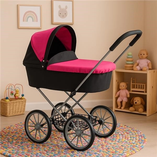 Il passeggino retrò per bambole PlayTo Betty unisce look classico e funzionalità moderna. Grazie all’accurata lavorazione, al telaio resistente e alle grandi ruote a raggi è perfetto per il gioco quotidiano in casa e all’aperto. La capottina pieghevole protegge la bambola o il peluche e crea uno spazio accogliente per un trasporto sicuro.