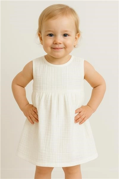 Leggerissimo e traspirante, il vestitino in mussola per bebè del marchio New Baby unisce comfort e stile. Il taglio a A, la gonna arricciata e la chiusura a bottone a pressione sul retro facilitano la vestizione. Realizzato in morbido 100% cotone, è ideale per l’estate: lascia respirare la pelle e riduce il rischio di surriscaldamento.