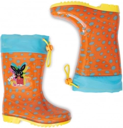 Allegri stivaletti per bambini con motivo BING mantengono i piedini asciutti sotto ogni pioggerellina. Hanno una tomaia in gomma impermeabile, suola antiscivolo e polsino regolabile con coulisse per una migliore aderenza e comfort.