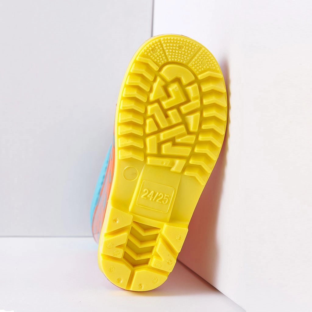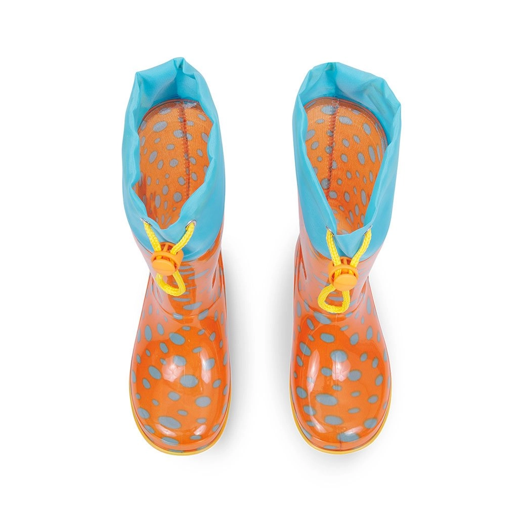 La suola antiscivolo assicura un passo stabile su superfici bagnate e il materiale in gomma di qualità facilita la pulizia. Ideali per l’asilo, il parco giochi e le gite con maltempo.