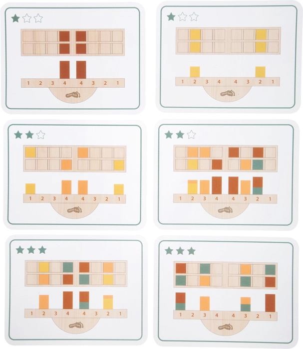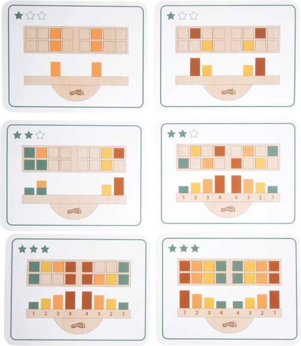 Questo gioco di equilibrio Montessori in legno certificato FSC introduce i bambini ai principi di equilibrio, peso e leva. I bambini posizionano i blocchi colorati sulle posizioni contrassegnate dai numeri e osservano come cambia l’equilibrio. Possono creare costruzioni proprie oppure seguire gli incarichi delle carte con diversi livelli di difficoltà.
