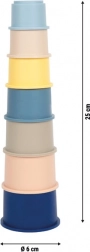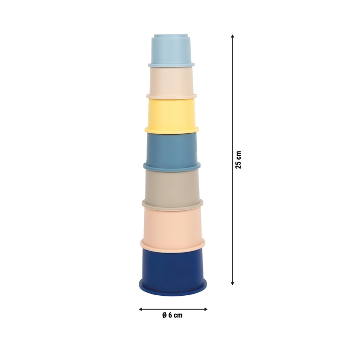 I bicchierini si inseriscono uno nell'altro per risparmiare spazio. Il materiale resistente è facile da pulire ed è adatto al gioco in casa e all'aperto.