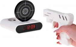 Rendi il risveglio più piacevole con una sveglia originale che zittisci puntando al bersaglio e premendo il grilletto. Questa divertente sveglia offre tiro al bersaglio con pistola a infrarossi, possibilità di registrare il tuo suono di allarme e 2 modalità di gioco. Grazie al display LCD ben leggibile e all’alimentazione a batterie o micro USB è ideale per camera da letto, ufficio e come regalo originale.