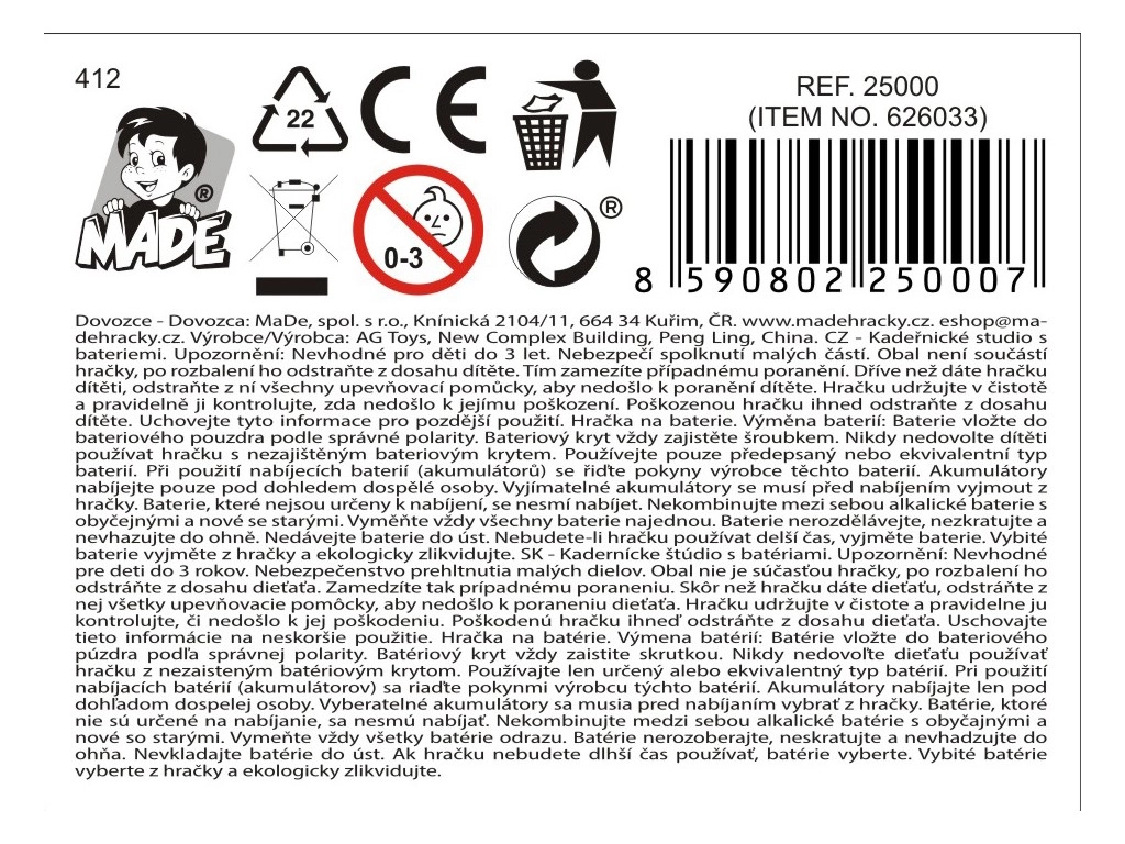 Il giocattolo è realizzato in plastica resistente ed è fornito in una confezione con finestra, perfetta anche come regalo. Le dimensioni 20 × 7 × 26 cm ne facilitano riporre e trasporto.