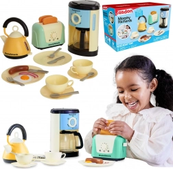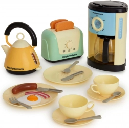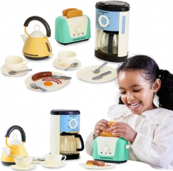 Questo set cucina per bambini dal design moderno offre tutto ciò di cui i piccoli chef hanno bisogno per preparare la “colazione perfetta”. Include una macchina del caffè con flusso d’acqua e caraffa, un bollitore elettrico con impugnatura comoda e indicatore del livello, un tostapane con funzione di espulsione dei toast, piattini, posate, tazze con piattini e un set di “alimenti” (toast, wurstel, una fetta di pancetta e un uovo all’occhio di bue).