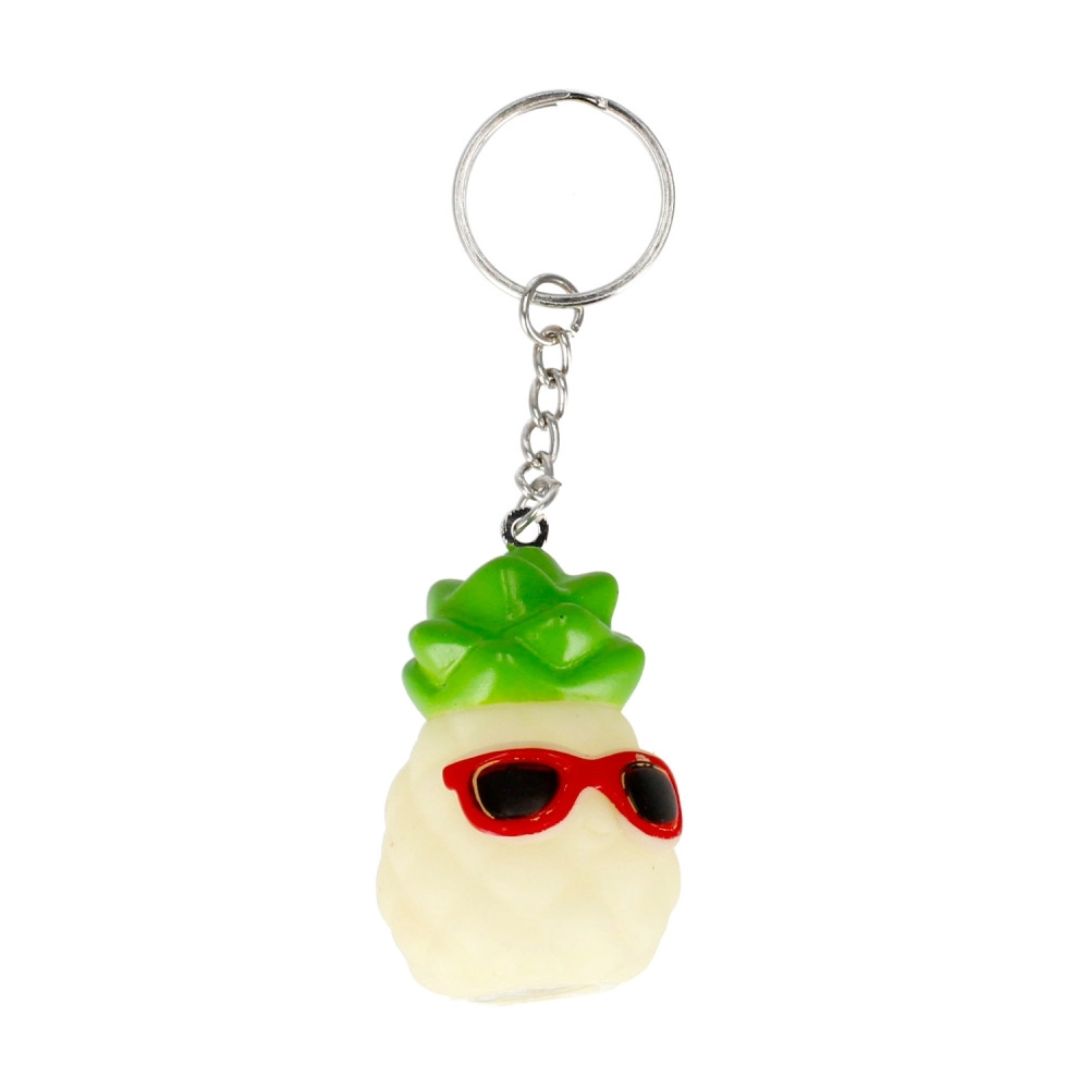 Il simpatico ananas con occhiali dona personalità alle tue chiavi e, grazie alla luce rossa, ti aiuta a trovarle più facilmente anche al buio. Il portachiavi è leggero, compatto e perfetto per chiavi, zaino e portafoglio.