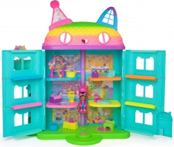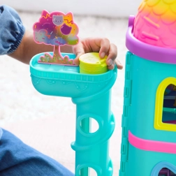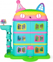 La grande Casa Arcobaleno di Gabby porta ai bambini la magia di GABBY’S DOLLHOUSE direttamente in cameretta. La casa apribile con 6 stanzette e tetto girevole nasconde una soffitta segreta, raggiungibile con il Cat‑A‑Vator (mini‑ascensore). Premendo il pulsante si attivano 6 effetti sonori e melodie tratti dalla serie, ideali per creare storie tutte loro.
