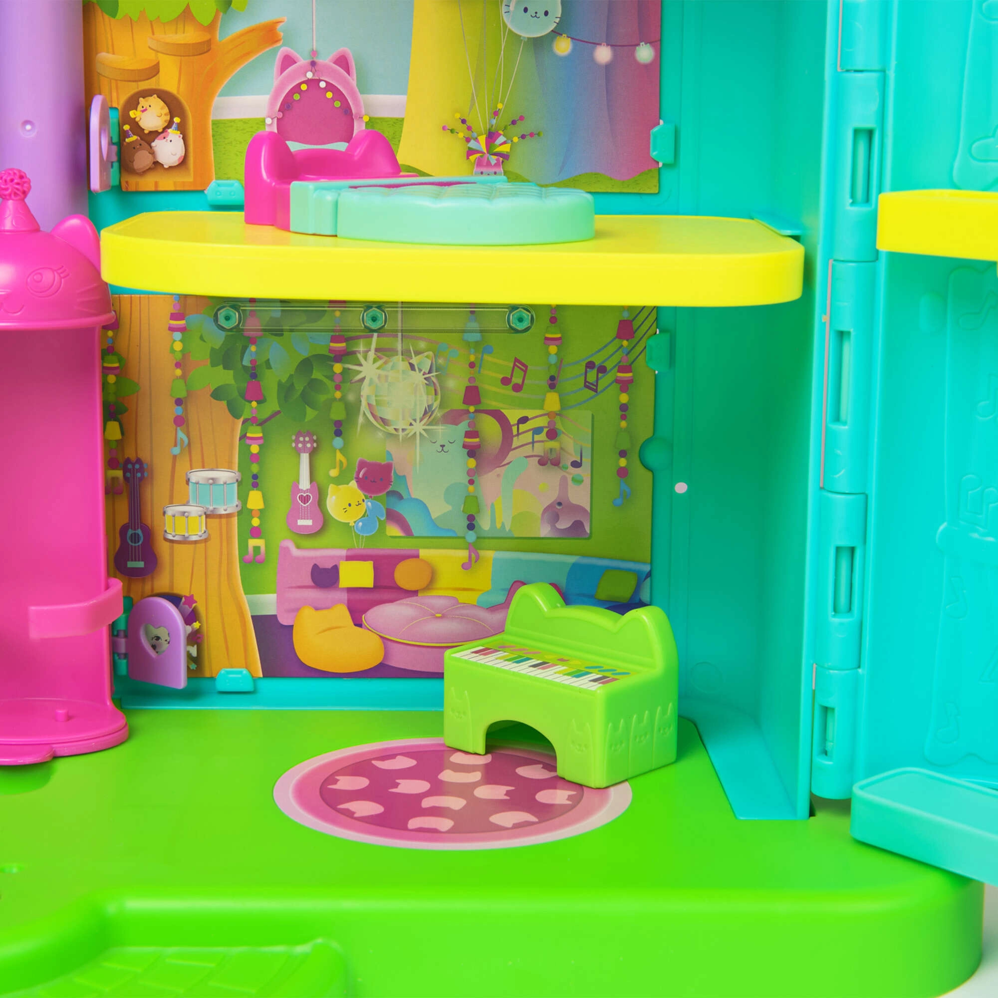 Tavolo DJ con pianoforte, lettiera per gatti, mobili e torre delle consegne con sorprese nascoste: tutto per un gioco creativo e duraturo.