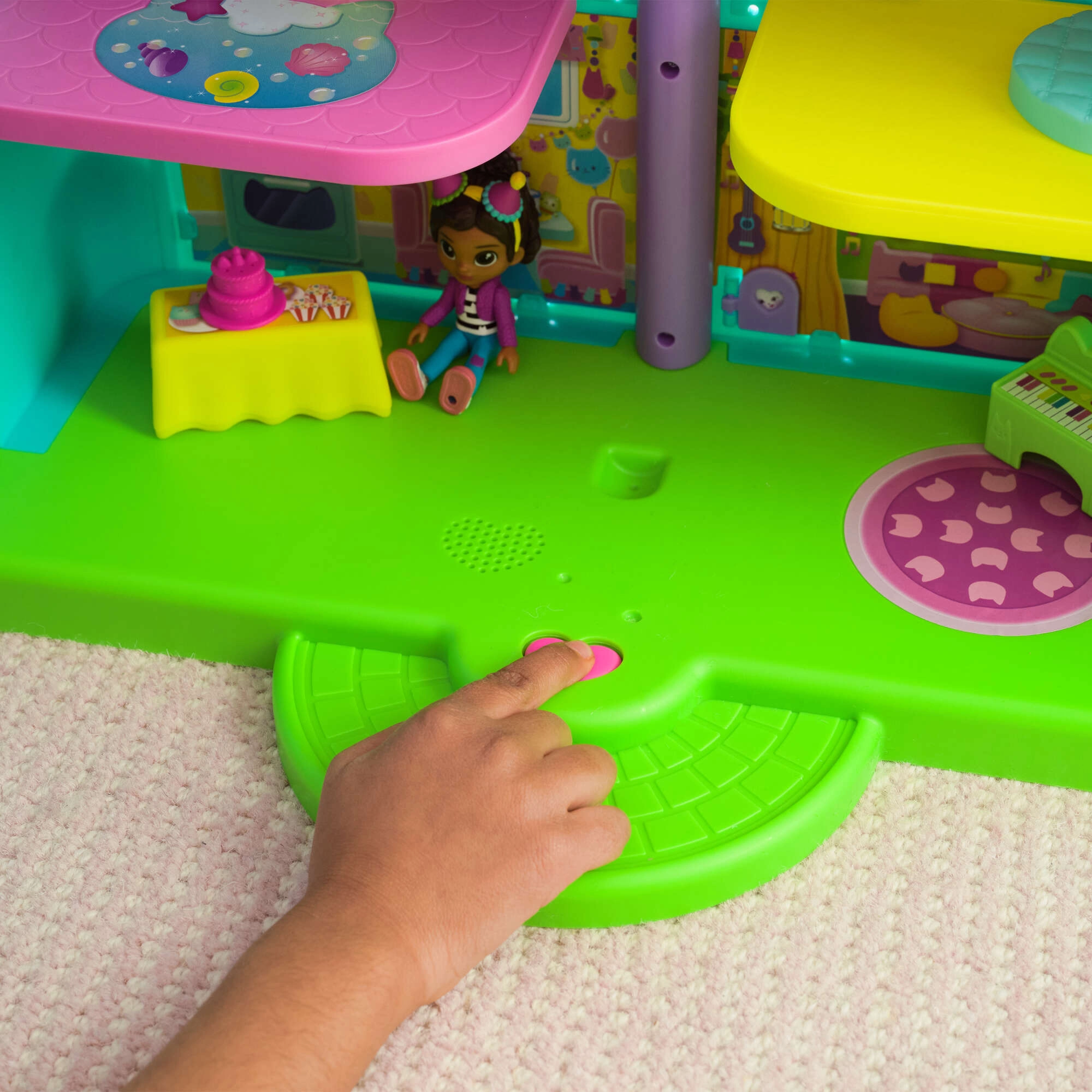 Premi il pulsante e goditi 6 effetti e melodie celebri di GABBY’S DOLLHOUSE. Perfetto per creare atmosfera di festa e scenette a tema.