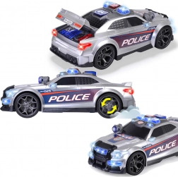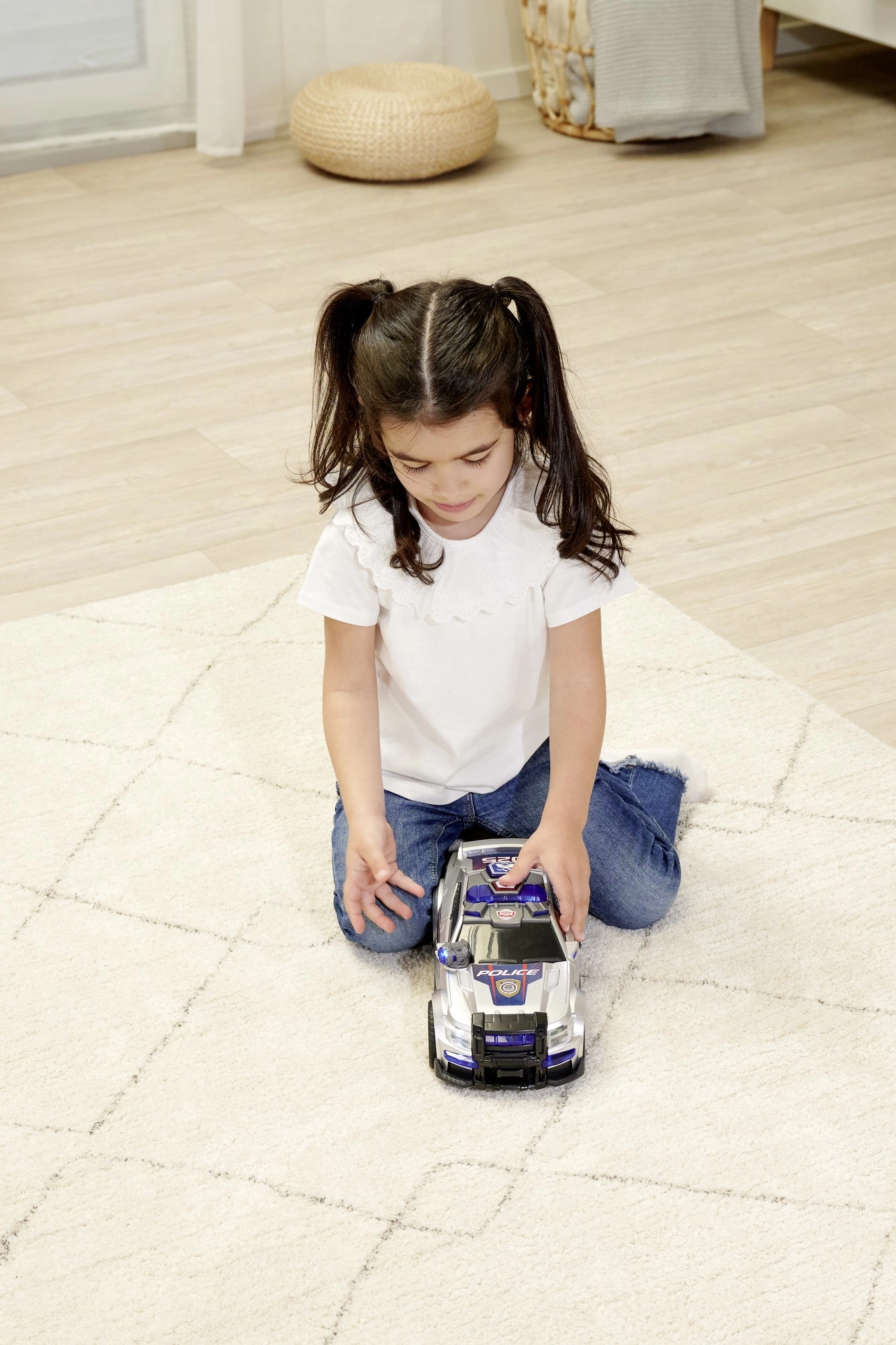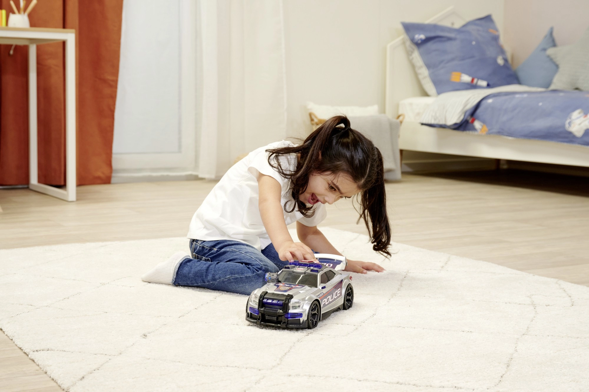 L'auto della polizia Street Force colpisce per il design argento-blu con evidenti scritte POLICE, una barra luminosa realistica e ruote resistenti. I bambini apprezzeranno il controllo semplice: basta premere il pulsante sul tetto e si attivano luci e suoni, ricreando fedelmente l'atmosfera di un intervento.