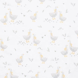 Il set comprende un cuscino 60 × 40 cm e un piumino 90 × 120 cm con motivo rilassante di ochette. I materiali sono solidi nei colori, privi di sostanze nocive e non stingono. La manutenzione è semplice: basta il lavaggio in lavatrice. Per un look coordinato della cameretta è possibile acquistare anche altri prodotti della collezione Ochette.