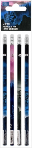 La confezione contiene 4 pz di matite lunghe 19 cm, comode da impugnare sia per bambini che per adulti. Il design elegante a tema bicicletta dona un aspetto originale al materiale da scrittura.