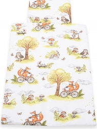 Questo set biadesivo per passeggino unisce praticità e design delicato. Un lato è in morbido cotone 100% con una stampa rassicurante di animaletti del bosco, l’altro in velluto morbidissimo, che scalda, è piacevole al tatto e mantiene la forma. Ideale fin dalla nascita: per il sonno, nel passeggino, nel seggiolino auto e come plaid per il gioco.