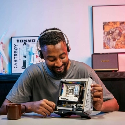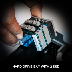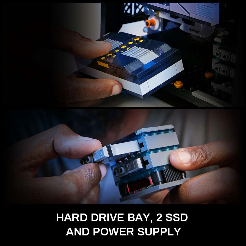 Assembla la scheda grafica, l’alimentatore, il supporto SSD, la scheda madre e i moduli di memoria: la costruzione modulare amplifica la sensazione del vero “building”.