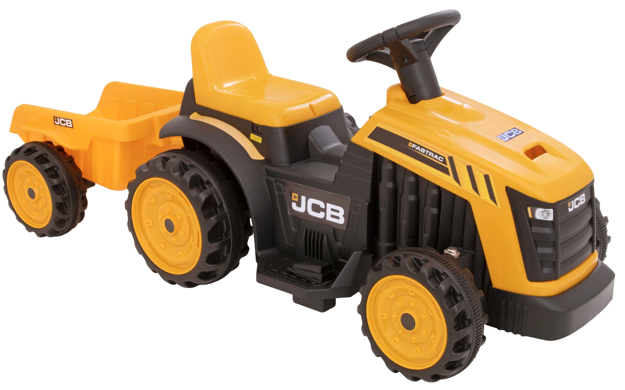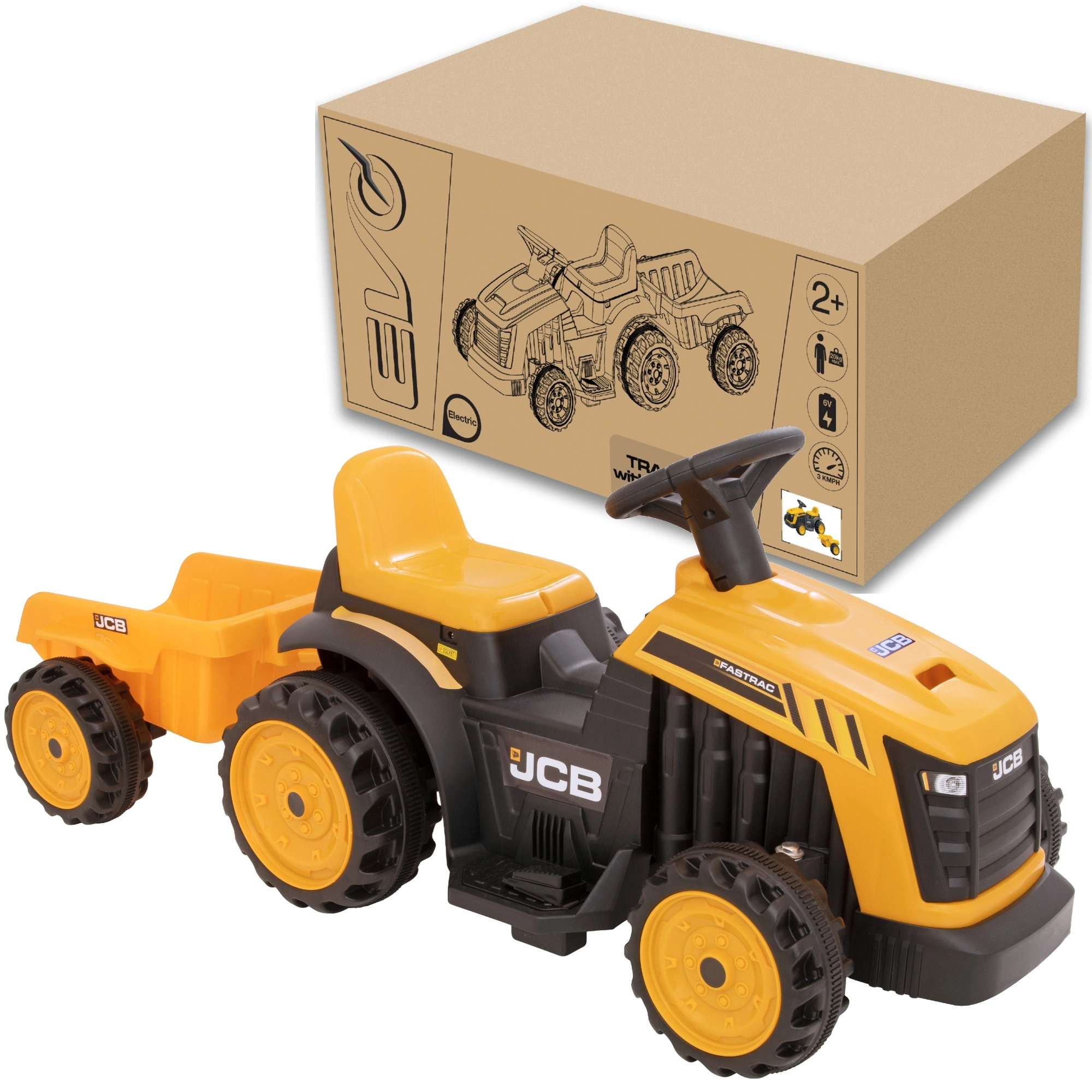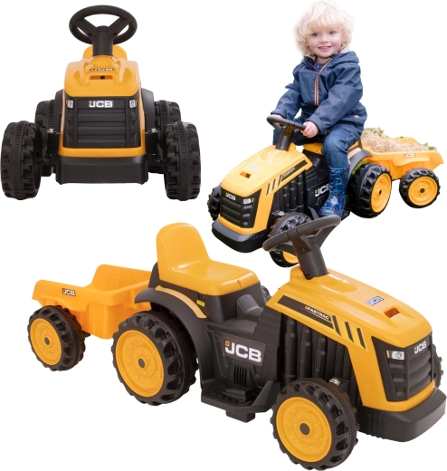 Il trattore elettrico cavalcabile con rimorchio del marchio EVO porta ai bambini tanto divertimento in giardino e in casa. Grazie alla guida semplice e alla bassa velocità massima, la guida è sicura e divertente. Il design realistico in stile JCB e i colori vivaci motivano al gioco attivo, sviluppano equilibrio e coordinazione e rafforzano i muscoli delle gambe.