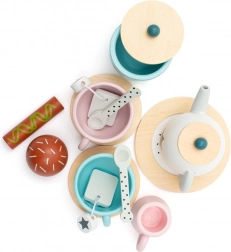 Elegante set da tè per bambini in colori pastello, ideale per i primi giochi di socializzazione. Include teiera, zuccheriera, tazze con piattini, cucchiaini, bustine di tè e dolcetti in legno – tutto in legno resistente con finiture di precisione. Il set favorisce il gioco di ruolo, l’apprendimento delle regole a tavola e allena la coordinazione occhio–mano.