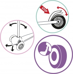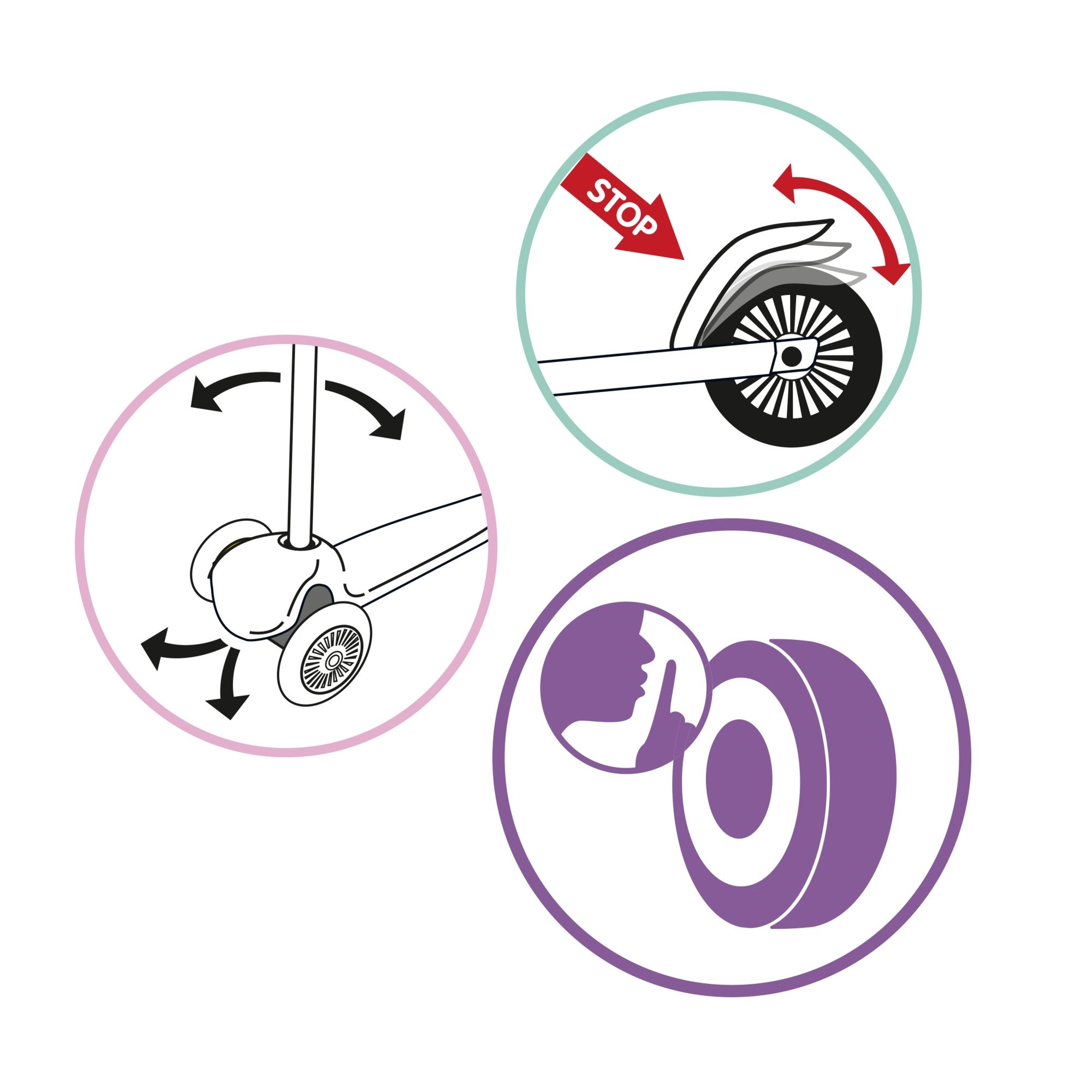 Il monopattino favorisce lo sviluppo dell’equilibrio e della coordinazione grazie allo sterzo bilanciato (lean-to-steer). Le ruote silenziose assicurano una guida confortevole, sia sul marciapiede che nell’area giochi. L’alta qualità costruttiva e i materiali resistenti garantiscono una lunga durata anche con uso frequente.