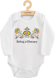 Elegante body per bambini con maniche lunghe e motivo folcloristico “Šohaj z Moravy” del brand New Baby che unisce tradizione e design moderno. Realizzato in 100% cotone per morbidezza e traspirabilità, con comoda chiusura a bottoncini automatici sulla spalla e tra le gambine. Colori certificati adatti ai neonati e materiale con OEKO-TEX Standard 100 per sicurezza e comfort ogni giorno.